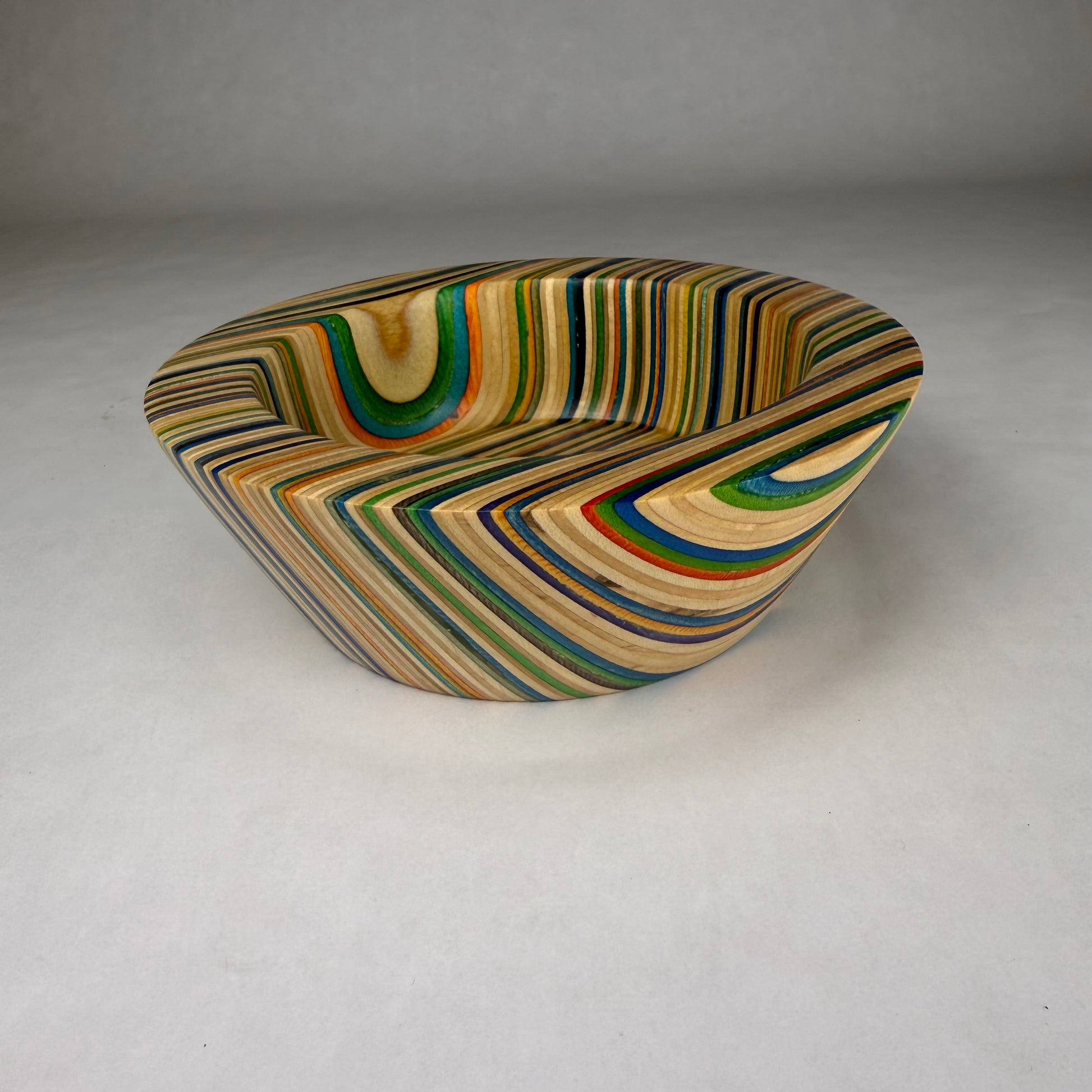 One of a kind bowls that consists of multiple repurposed skateboard noses and tails, laminated together and turned on the lathe. A colorful and unique addition to your home decor!